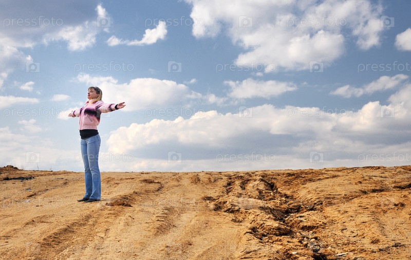 Одинокая женщина, стоящая посреди пустыни
