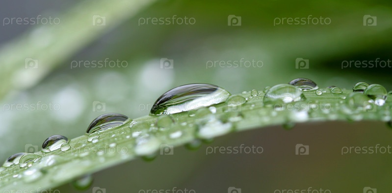 Капли росы на зеленой травинке