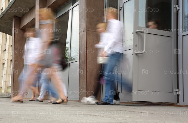Люди выходят из здания