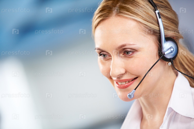Портрет женщины-руководителя, работающей с ноутбуком на фоне общающихся партнеров