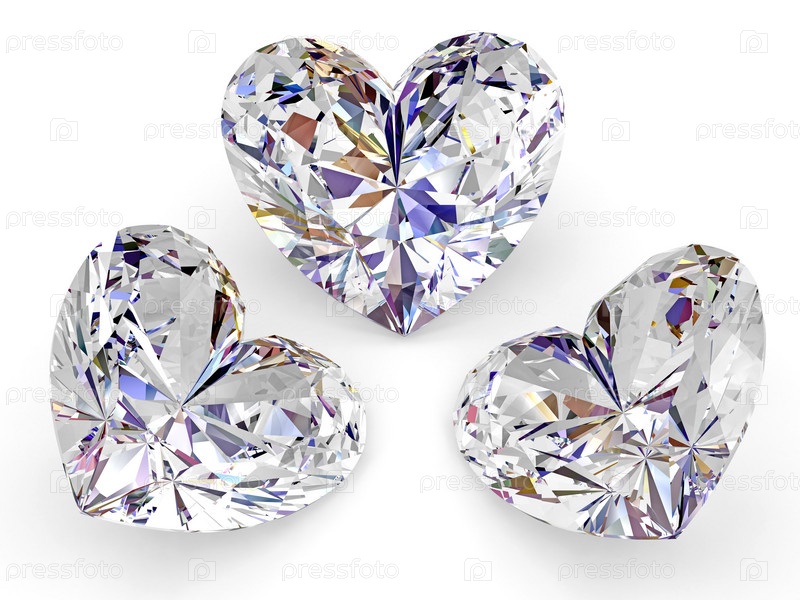 Три бриллианта в форме сердца на белом фоне