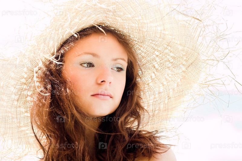 Улыбающаяся девушка в соломенной шляпе портрет