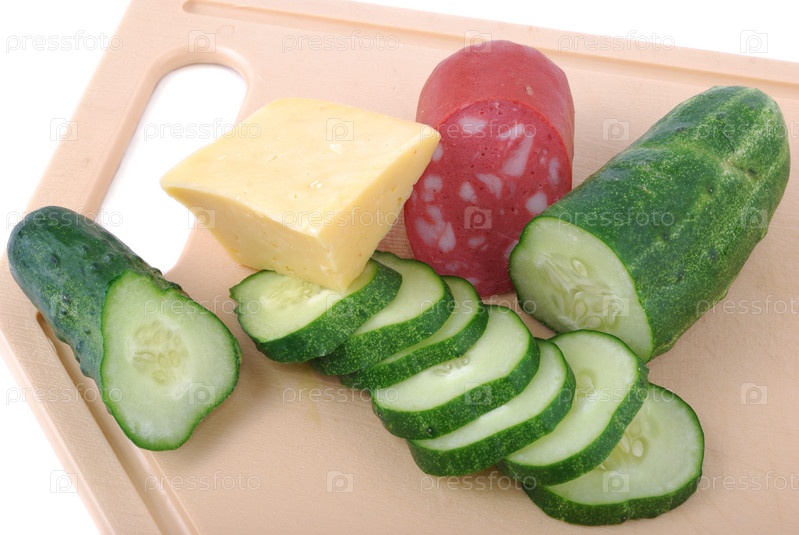 Нарезанные огурцы, сыр и колбаса