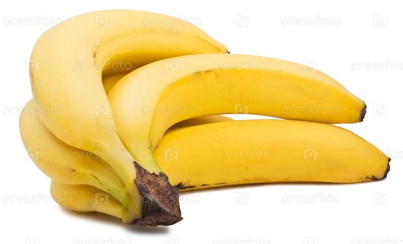 Гроздь спелых бананов на белом фоне