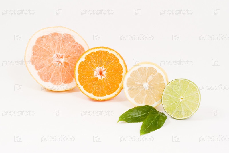 Половинки цитрусовых на белом фоне