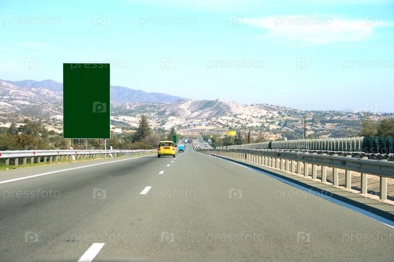 Дорога, горы, рекламный щит