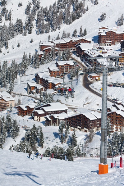 Вид на высокогорный лыжный курорт сверху