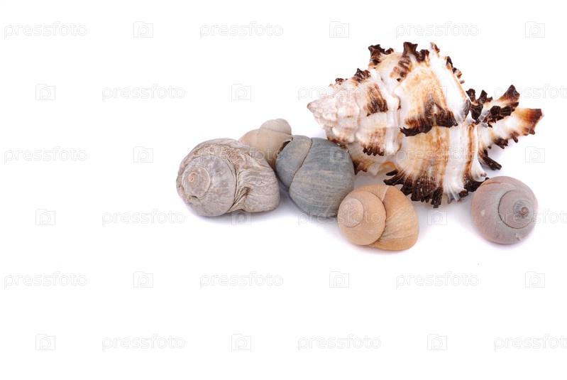 Морские ракушки на белом фоне