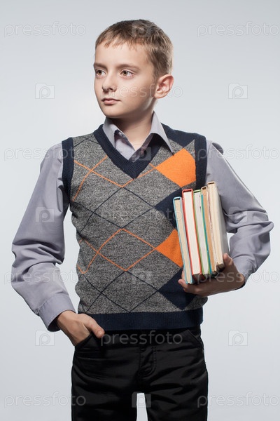 Маленький мальчик с книгами в руках