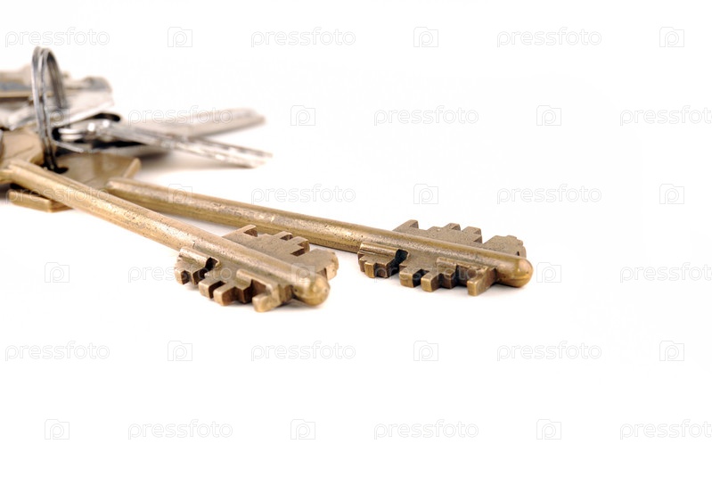 Связка ключей на белом фоне