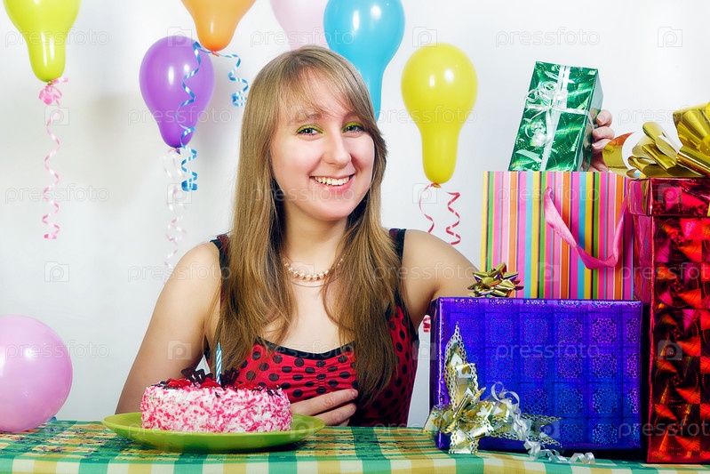 Счастливый день рождения молодой девушки