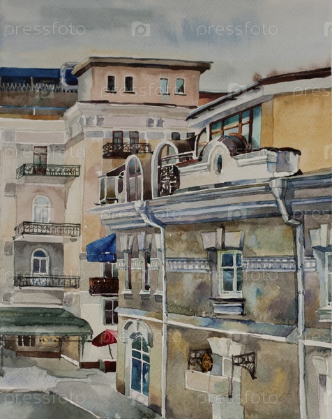 Акварель, центральная частт Ялты, Крым