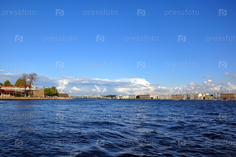 Панорама Санкт-Петербурга с реки Невы. Петропавловская крепость, Санкт-Петербург, Россия