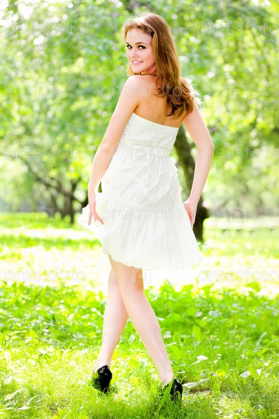 Девушка в белом платье снова в парке