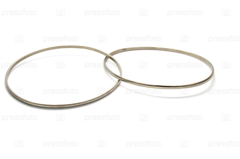 Металлические браслеты на белом фоне