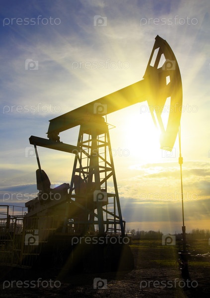 Работающий нефтяной насос на закате