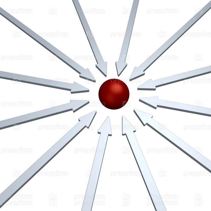 Стрелки и красный шар в центре - 3d