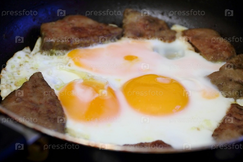 Жареные яйца и мясо на завтрак