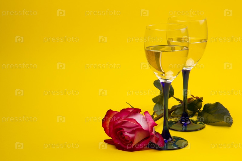 Два бокала вина и роза
