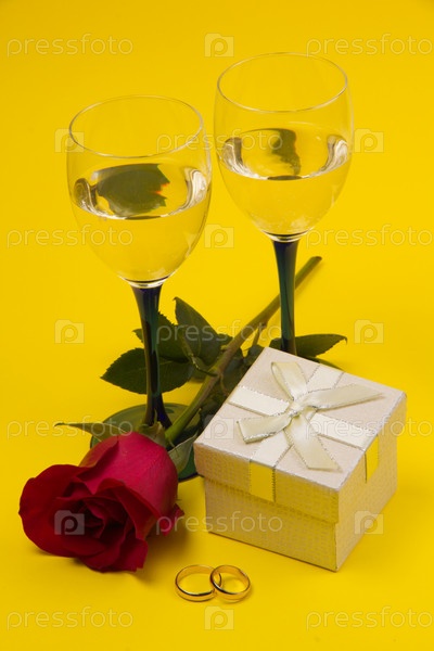 Два бокала вина и роза