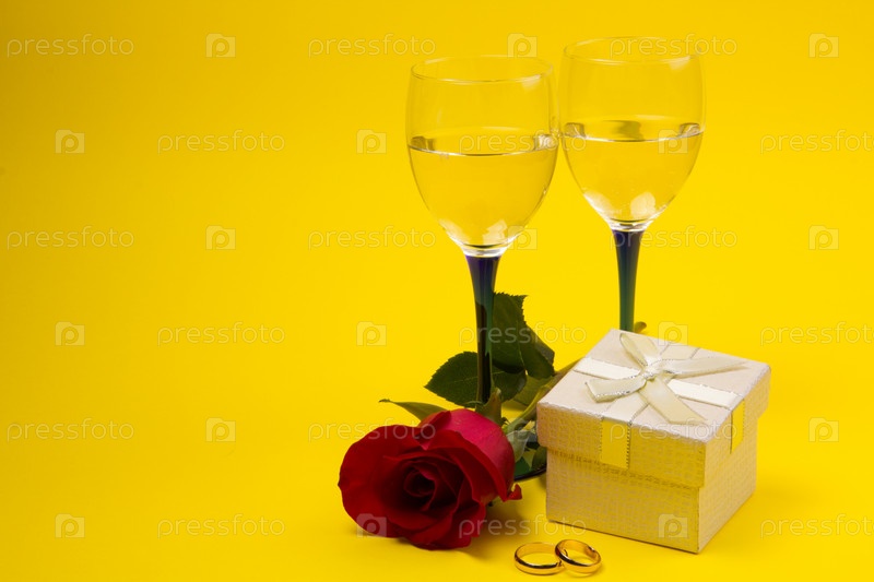 Два бокала вина и роза