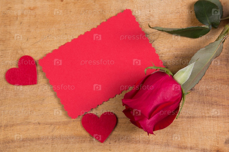 Красная роза и открытка