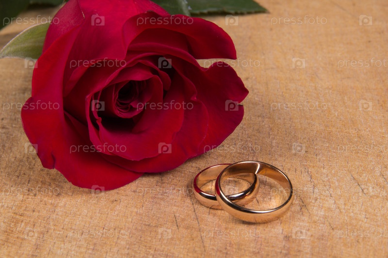 Обручальные кольца и роза