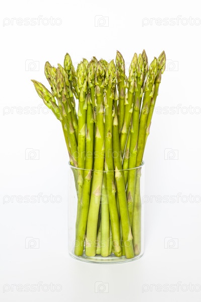 Спаржа в стакане на белом фоне