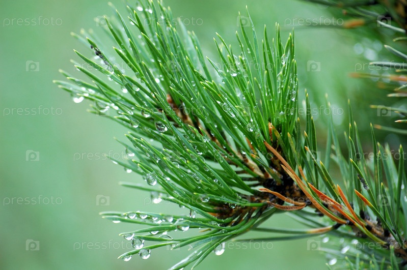 Сосновая ветка с каплями воды