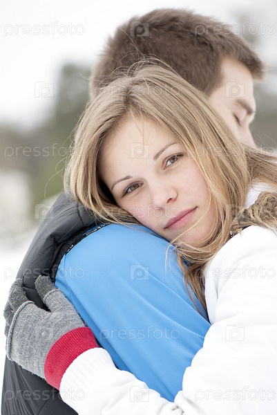 Нежные объятия влюбленной молодой пары