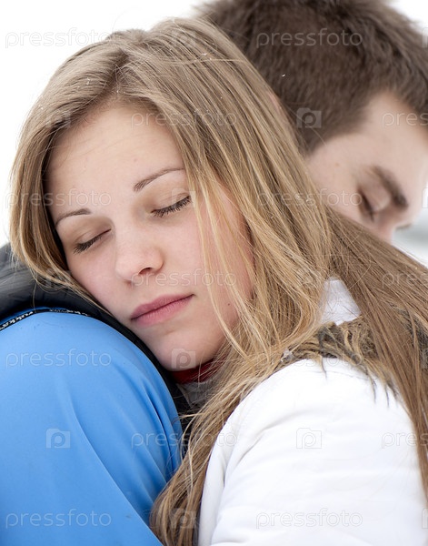 Нежные объятия влюбленной молодой пары