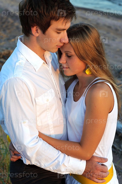 Нежные объятия влюбленной молодой пары