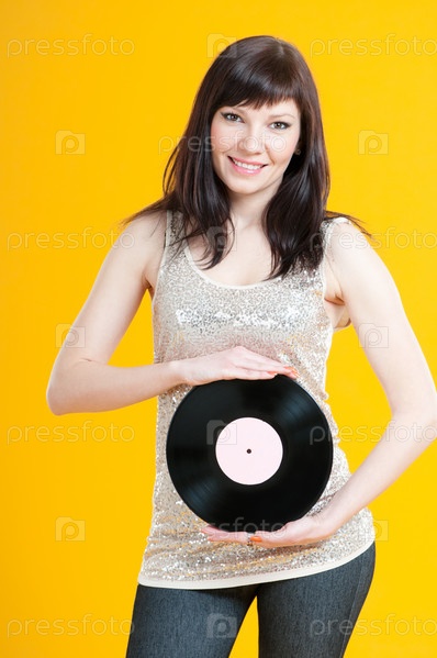 Улыбающаяся девушка с виниловой пластинкой