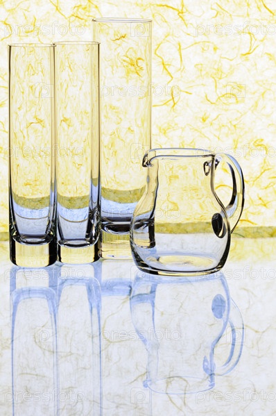Стаканы и кувшин на желтом фоне