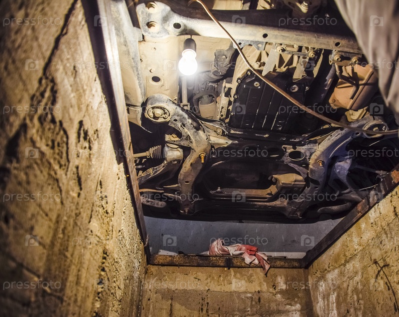 Вид на автомобиль снизу. Техническое обслуживание автомобиля