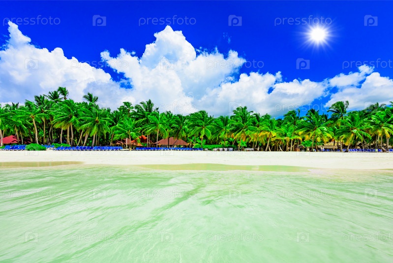 Песчаный пляж и спокойное синее море