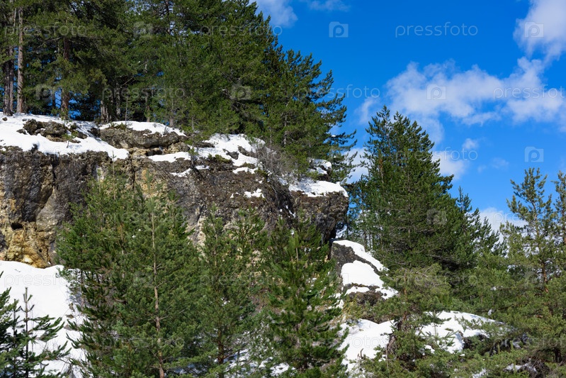 Скалы зимой с лесом