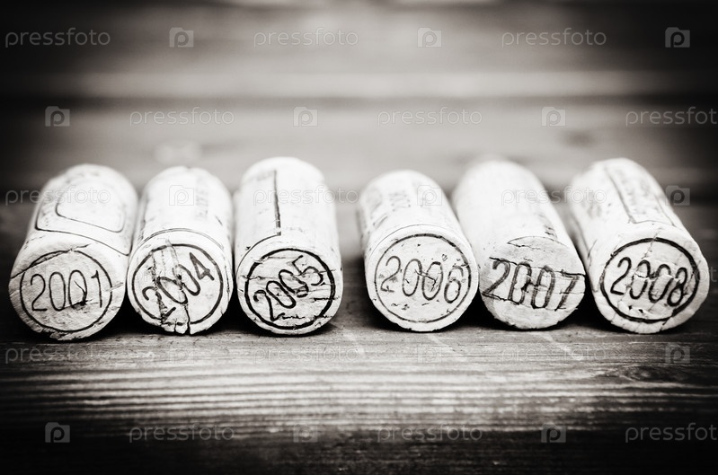 Винные пробки на деревянном фоне