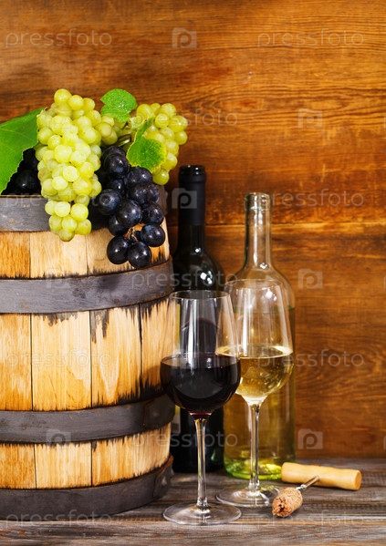 Натюрморт с красным и белым вином