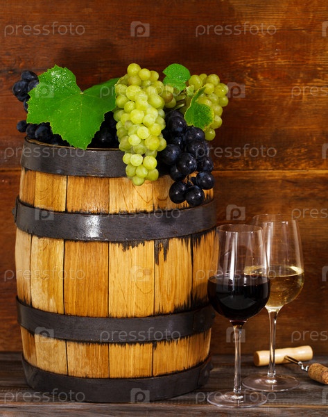 Натюрморт с бокалами красного и белого вина
