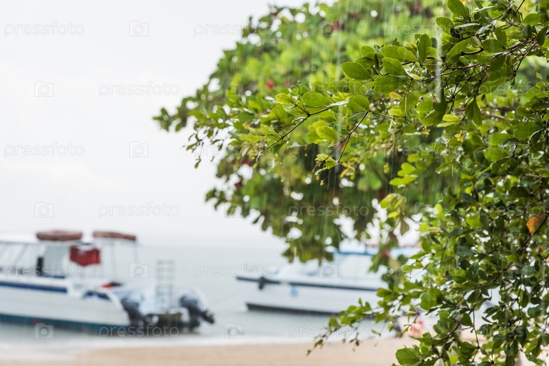 Морской пляж в дождь