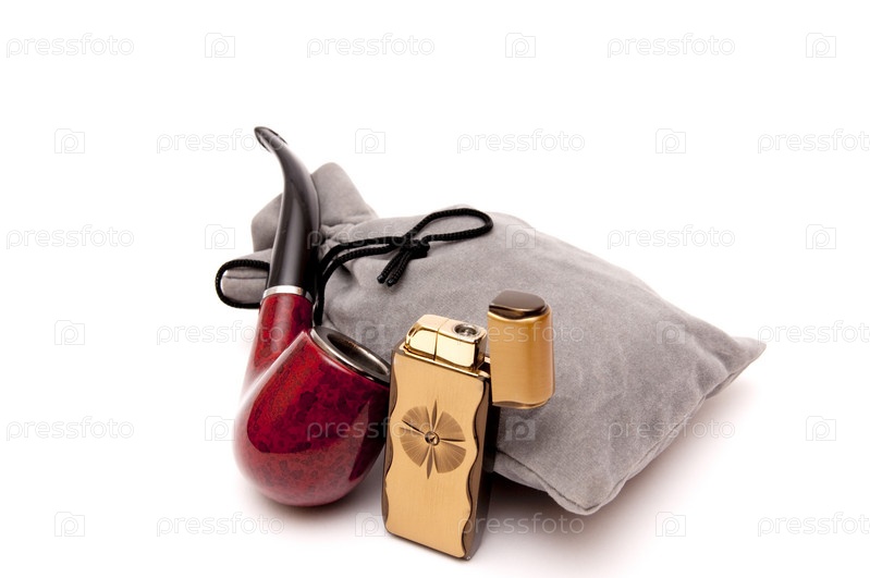 Трубка, табак, кисет на белом фоне