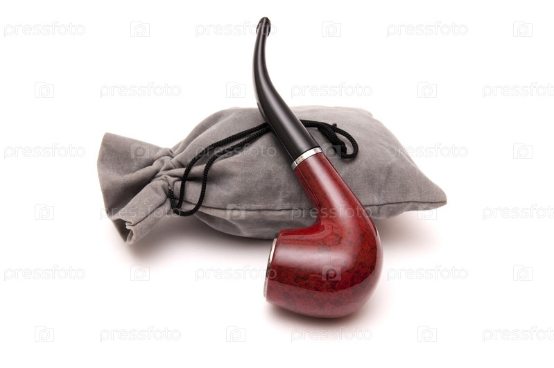 Трубка, табак, кисет на белом фоне