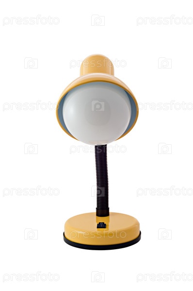 Желтая люминесцентная настольная лампа на белом фоне
