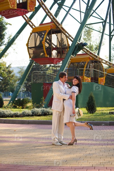 Счастливая молодая пара на прогулке