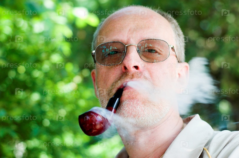 Солидный мужчина в очках курит трубку