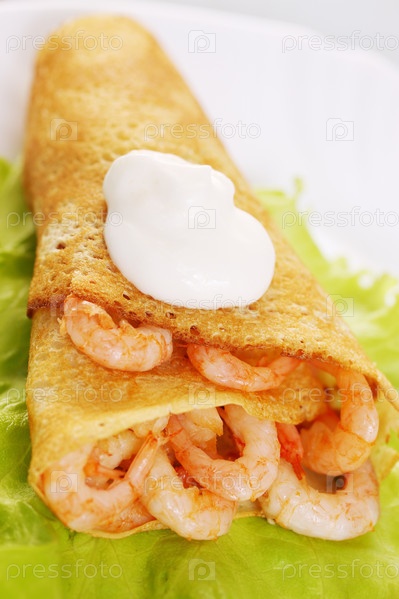 Блины, фаршированные креветками