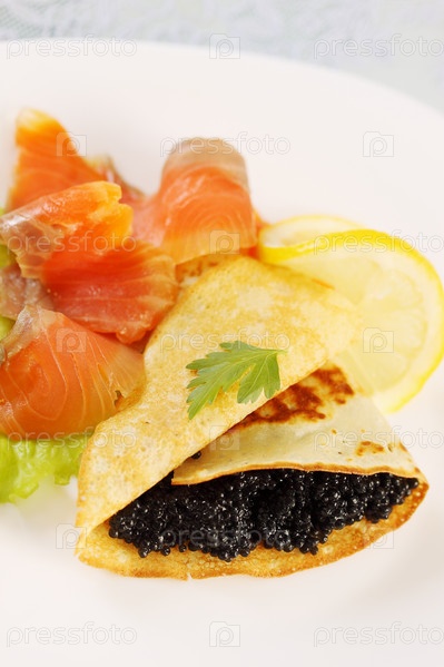 Блин с икрой и лососем