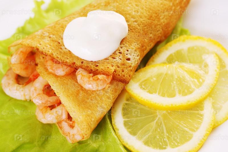 Блинчики с креветками и лимоном