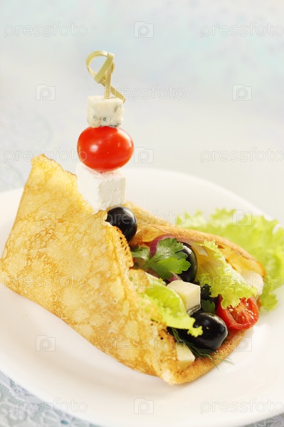 Блин с салатом на шпажке